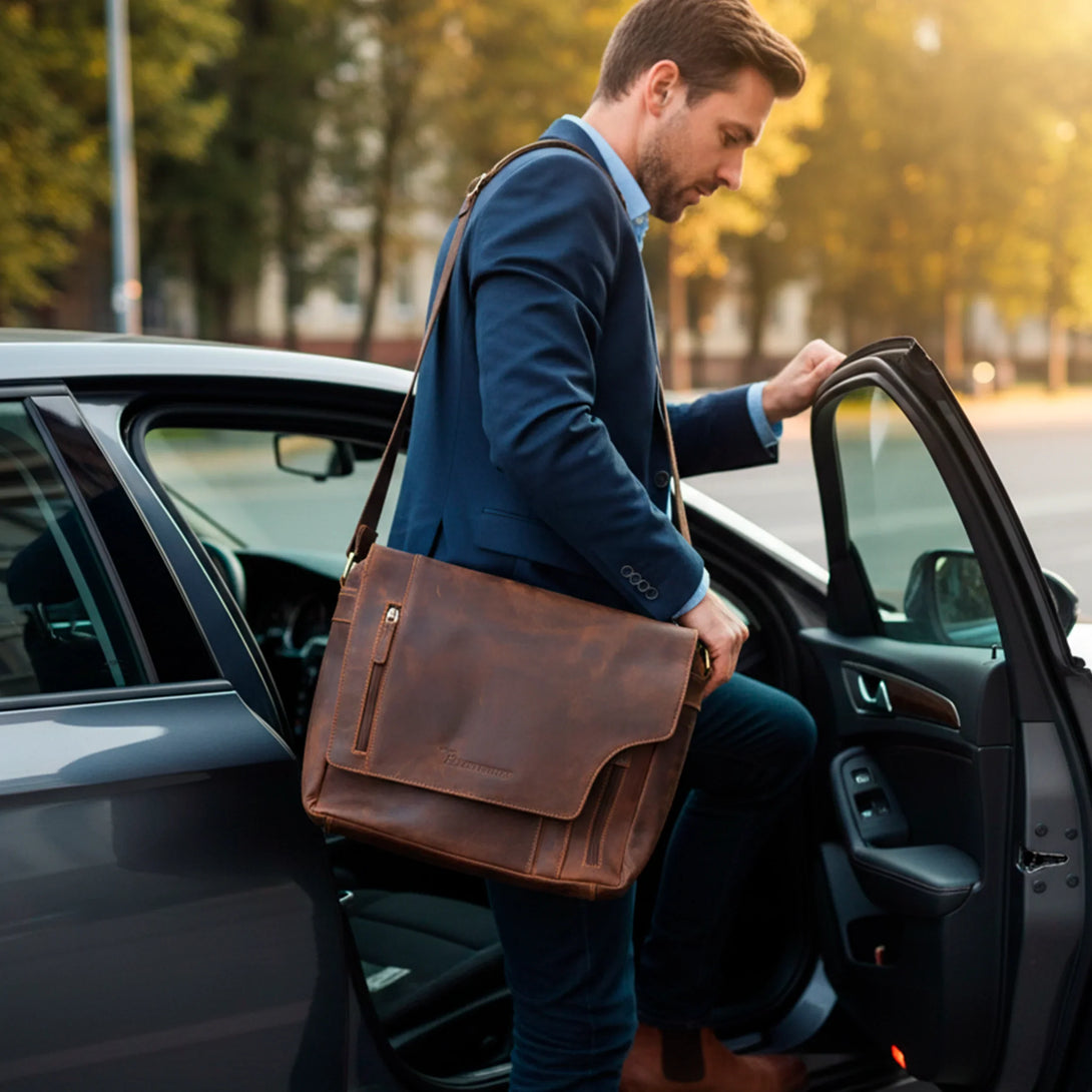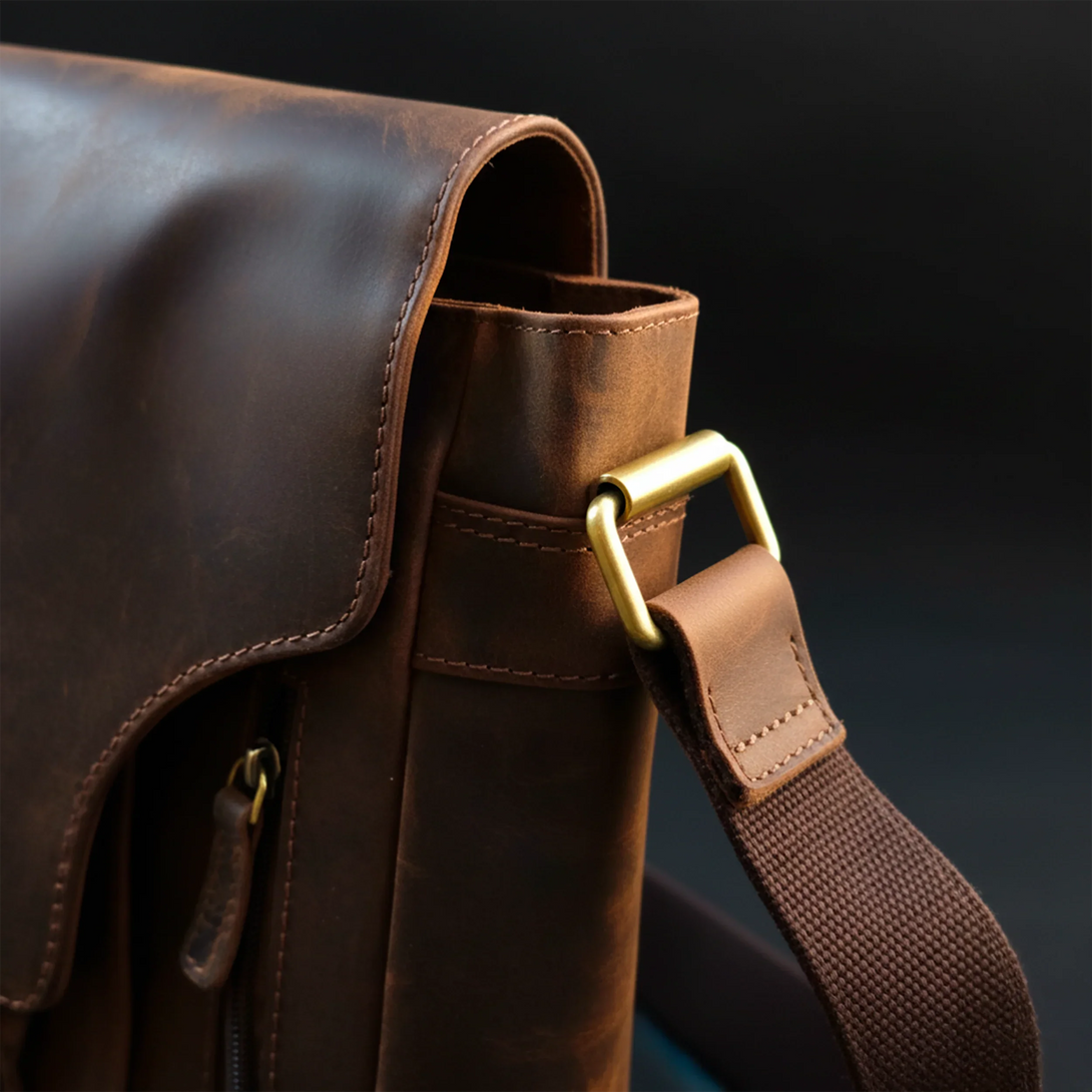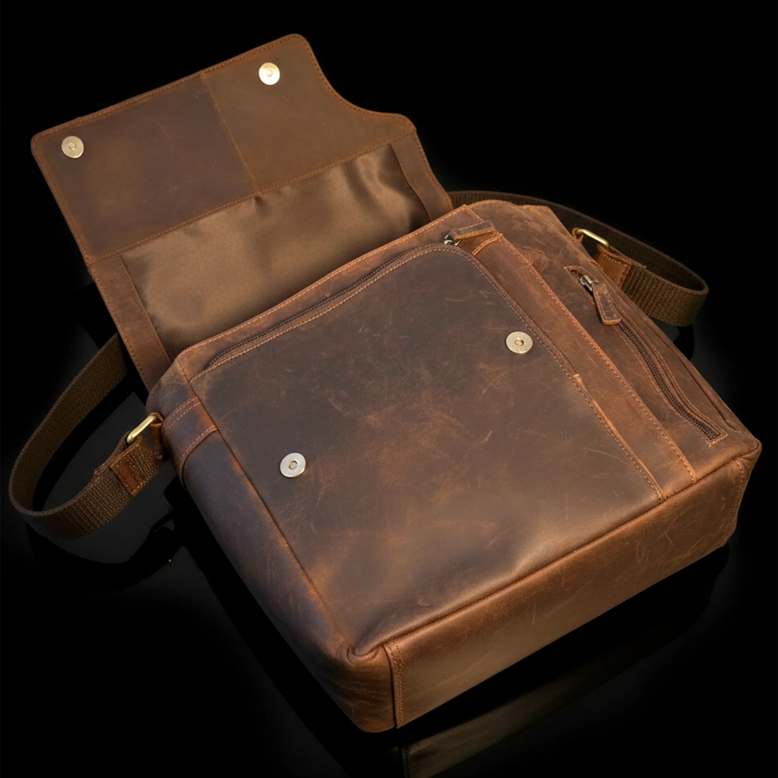 Men's Sac Messager en Cuir – Cuir Nubuck Marron