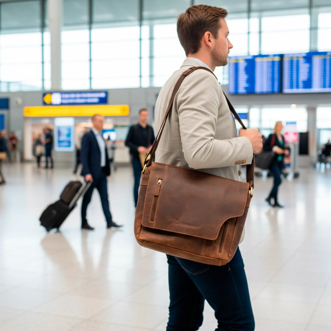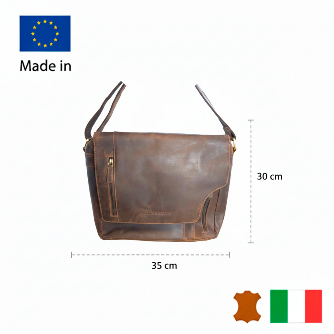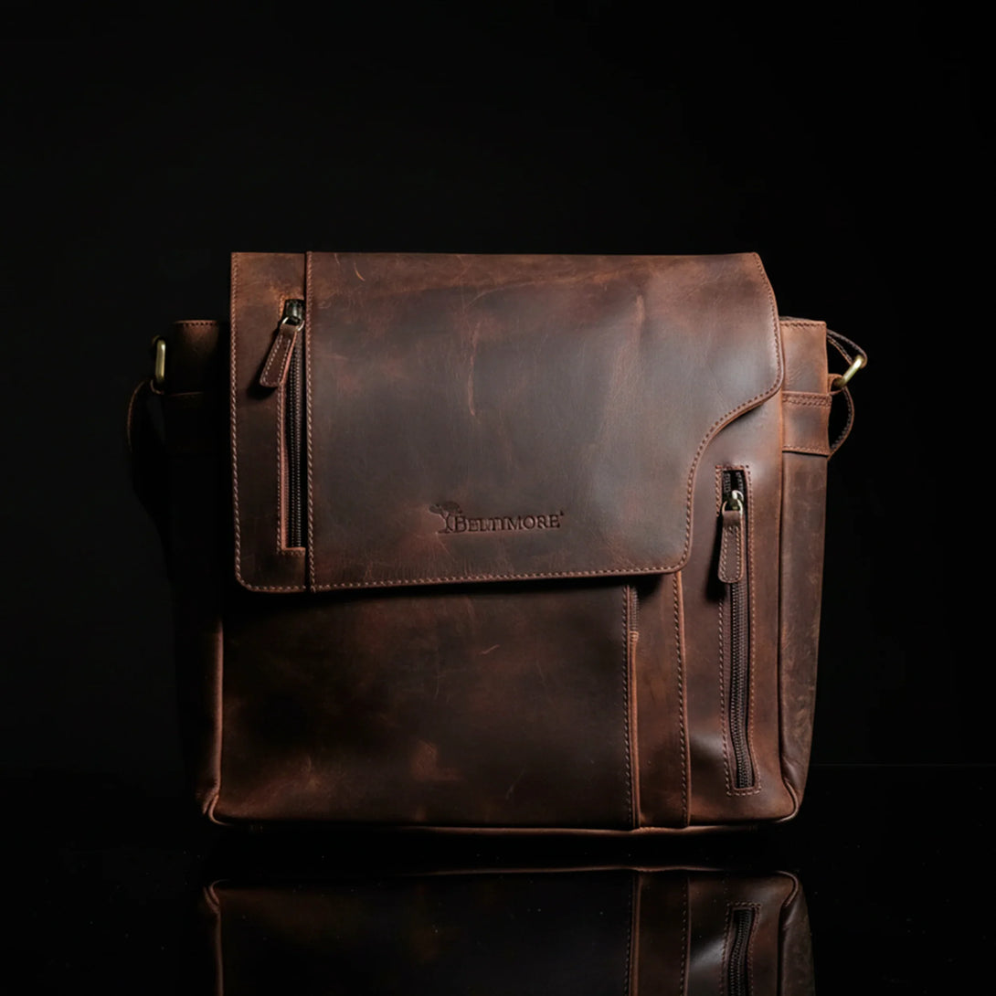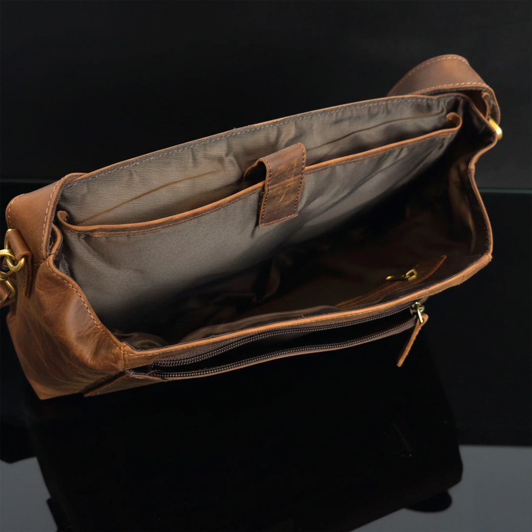 Men's Sac Messager en Cuir – Cuir Nubuck Marron